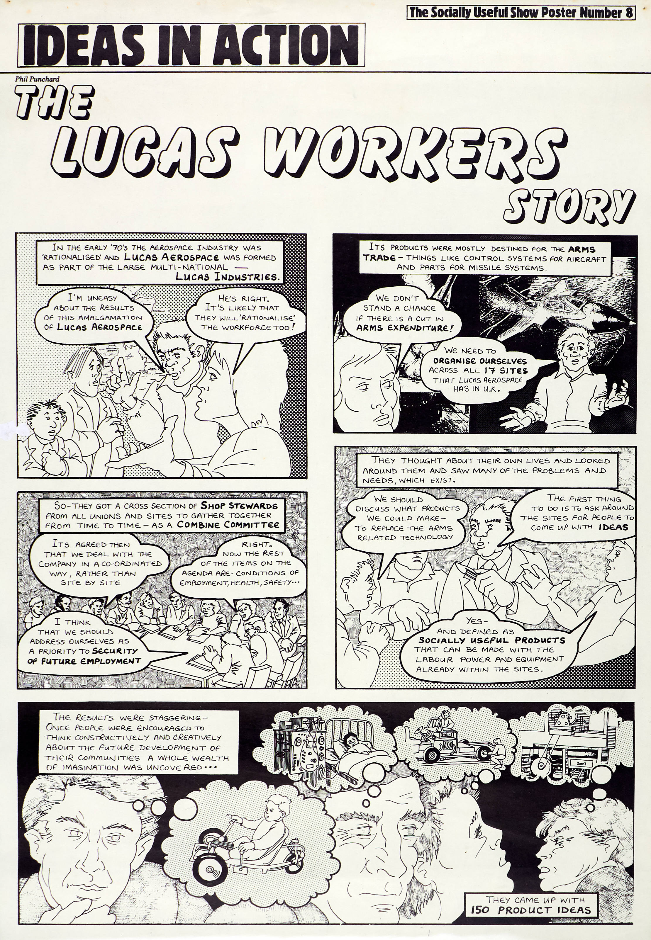 The Lucas plan provides an inspiring demonstration of workers’ optimism and creative ability, even a glimpse into a just-out of reach society where technologies are developed and used based more on their relative merits and alongside democratic planning rather than being heavily influenced by market factors and profitmaking. The Lucas combine committee offers an imperfect prototype of an organisation which could democratically co-develop plans for industrial production in the interest of social needs rather than profit.
