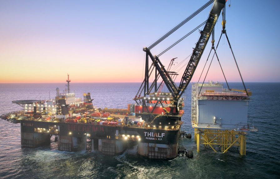 Above: Installation of an offshore substation platform at the Doggerbank wind farm. Click to open full-size.